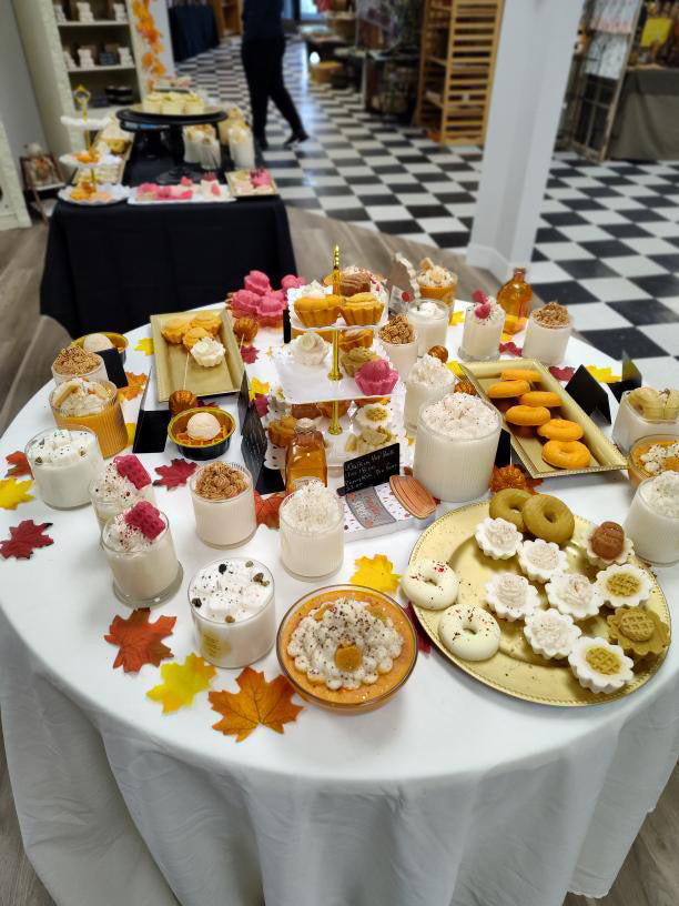 Step into Modestly Lit and feel instantly at home. Erica's shop is a warm, inviting space where every candle is hand-poured with love, filling the air with sweet, comforting scents. inspired by the cozy charm of a bakery, each corner invites you to slow down, enjoy the little moments, and find the perfect candle to brighten your space. from soft neutral tones to the gentle glow of our candles, every detail is designed to make you feel wrapped in warmth and comfort.”
